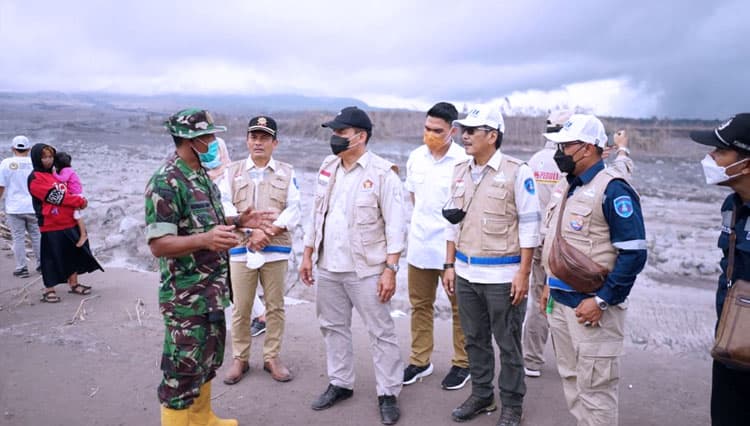 TIMES Bondowoso/Ketua Dewan Penasehat Partai Gerindra DPD Jawa Timur, Bambang Haryo Soekartono bersama DPC Partai Gerindra Surabaya, Lumajang dan Malang saat meninjau dan menyerahkan bantuan Bencana Erupsi Gunung Semeru.Foto Partai Gerindra Jatim