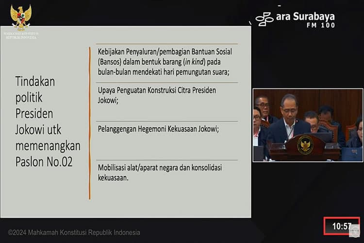 TIMES Bondowoso/Ketua KPU RI Hasyim Asy'ari dalam sidang lanjutan PHPU di Mahkamah Konstitusi, Jakarta. (FOTO: Tangkapan Layar)