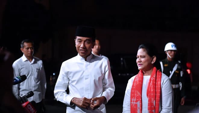 TIMES Bondowoso/Capres nomor urut 01 Joko Widodo bersama istri Iriana Joko Widodo tiba di lokasi untuk mengikuti debat Pilpres 2019 putaran kelima, di Hotel Sultan, Jakarta, Sabtu (13/4/2019). (FOTO: Rivan Awal Lingga/Antarafoto)
