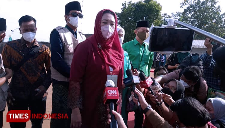 TIMES Bondowoso/Putri Abdurrahman Wahid (Gus Dur) Yeny Wahid saat diwawancarai oleh awak media. (FOTO: Moh Ramli/TIMES Indonesia)