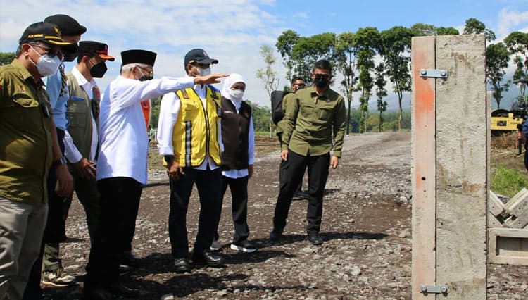 TIMES Bondowoso/Sekjen PUPR RI Mohammad Zainal Fatah dampingi Wapres RI KH Ma'ruf Amin meninjau lokasi pembangunan Hunian Sementara (Huntara) bagi korban terdampak erupsi Gunung Semeru di Desa Sumbermujur, Kecamatan Candipuro, Kabupaten Lumajang.