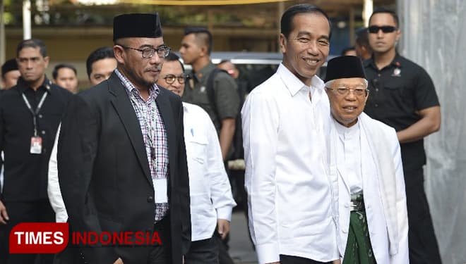 TIMES Bondowoso/Presiden terpilih, Jokowi, saat tiba di Gedung KPU RI, Minggu (30/06/2019). (FOTO: Hasbullah/TIMES Indonesia).